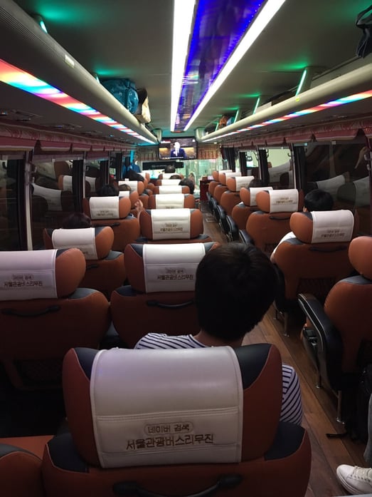 버스 좌석은 넓어서 편하지만 왠지 버스 안은 휘황찬란했어요. ㅎㅎ