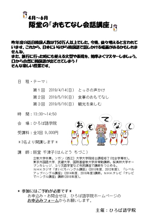 過去の講座一覧 · 2019/03/26 お陰様で4月〜6月阪堂の「おもてなし会話講座 」が定員に達しました<終了> お陰様で4月〜6月阪堂の「おもてなし会話講座 」が定員に達しましたので、締め切らせていただきます。 お申込み頂きまして本当にありがとうございました。 戻る tagPlaceholderカテゴリ: 講座