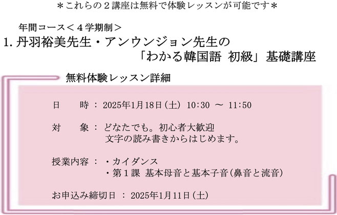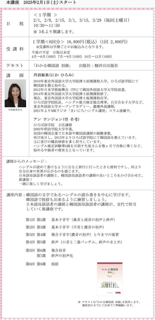 丹羽裕美先生の「わかる韓国語 初中級講座」