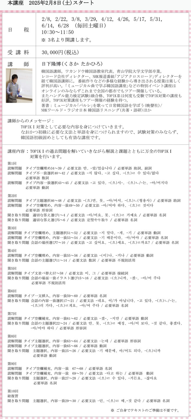 日下隆博先生のミュージカル大定番名曲で学ぶ韓国語